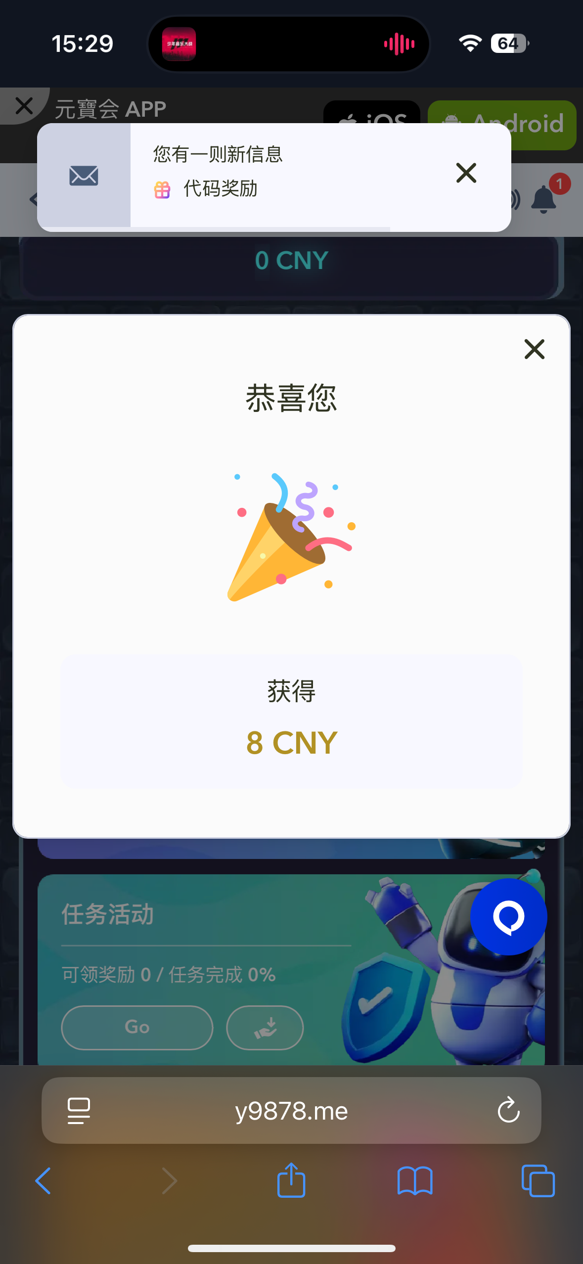 中间随便抽了个码,领到了,感谢