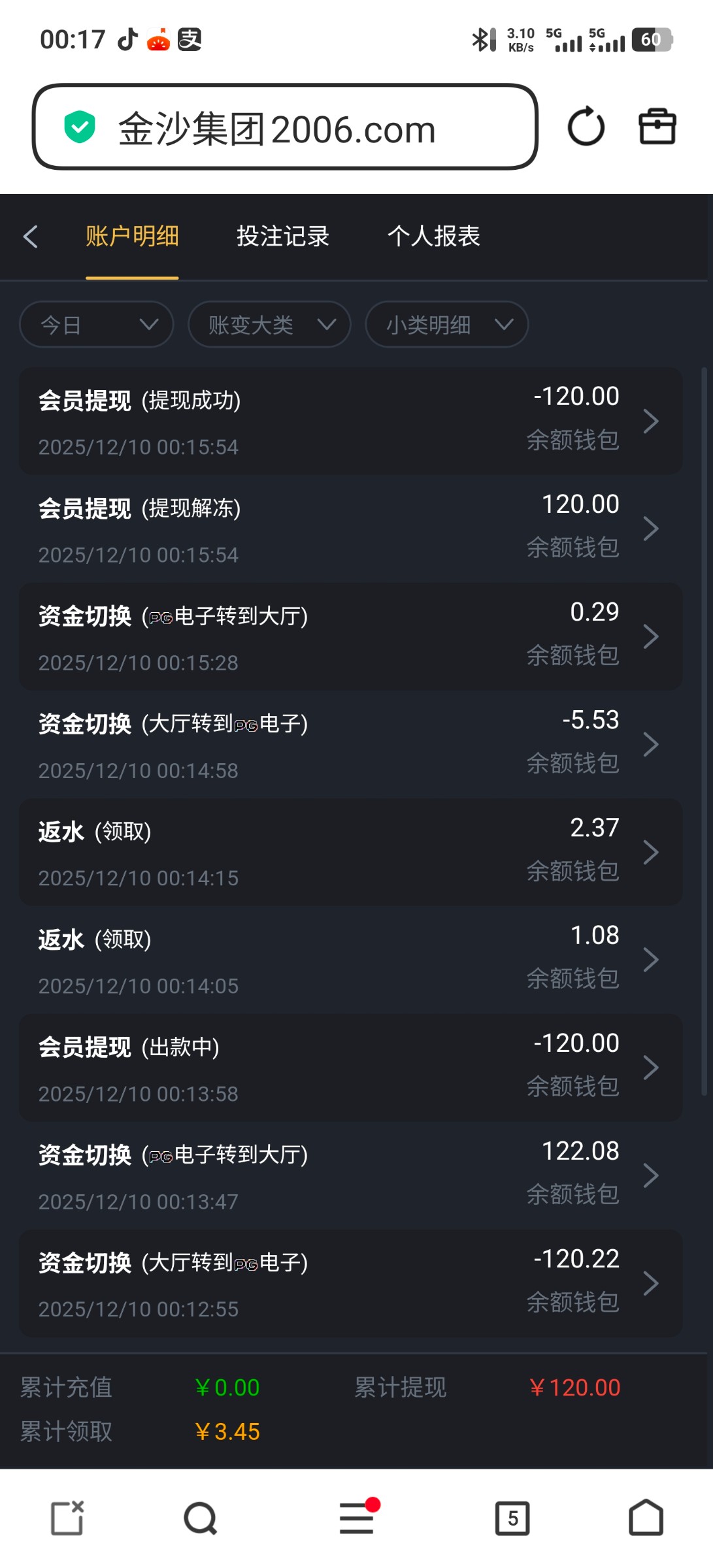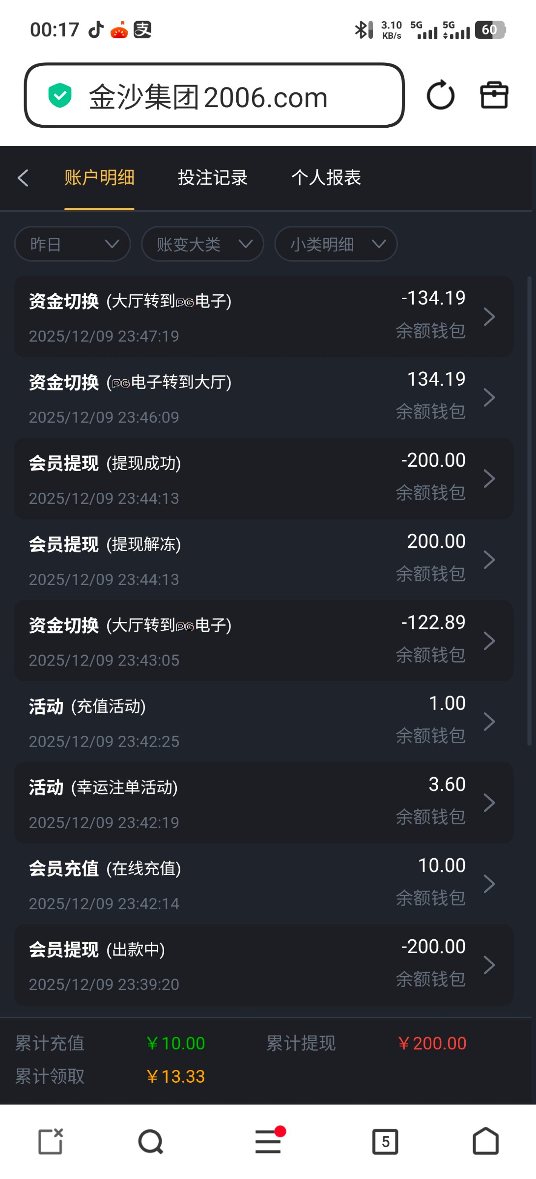 收到短信进去领了8块钱,打到300,充值10块钱提了320,短信链接
