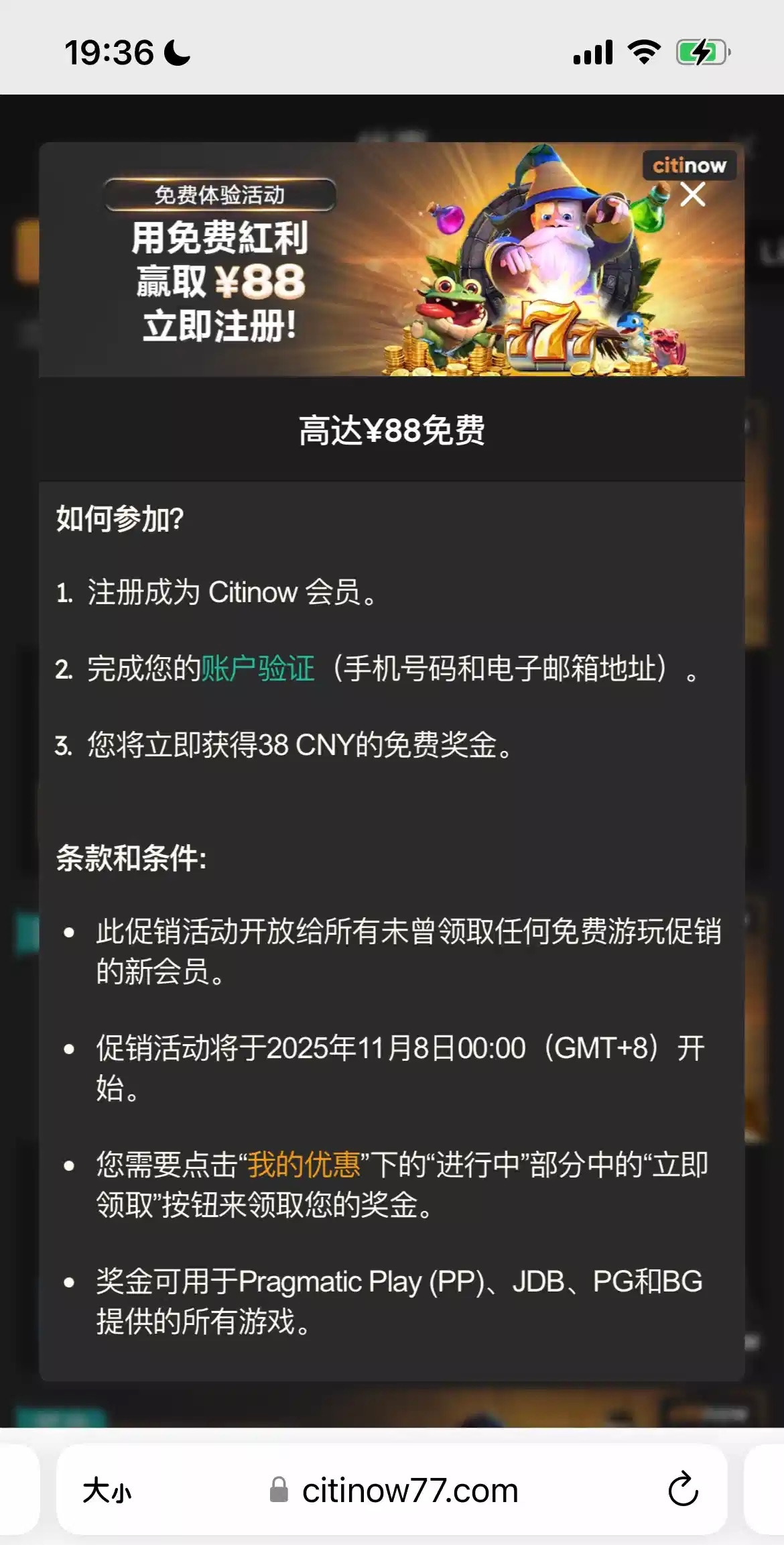 注册账号了手机号接收不到验证码的话找在线客服申请手动验证,客服会让你加客服微信验证就可以了,验证完在个人中心我的优惠里领取,要打190流水才能转出中心钱包,祝各位大红