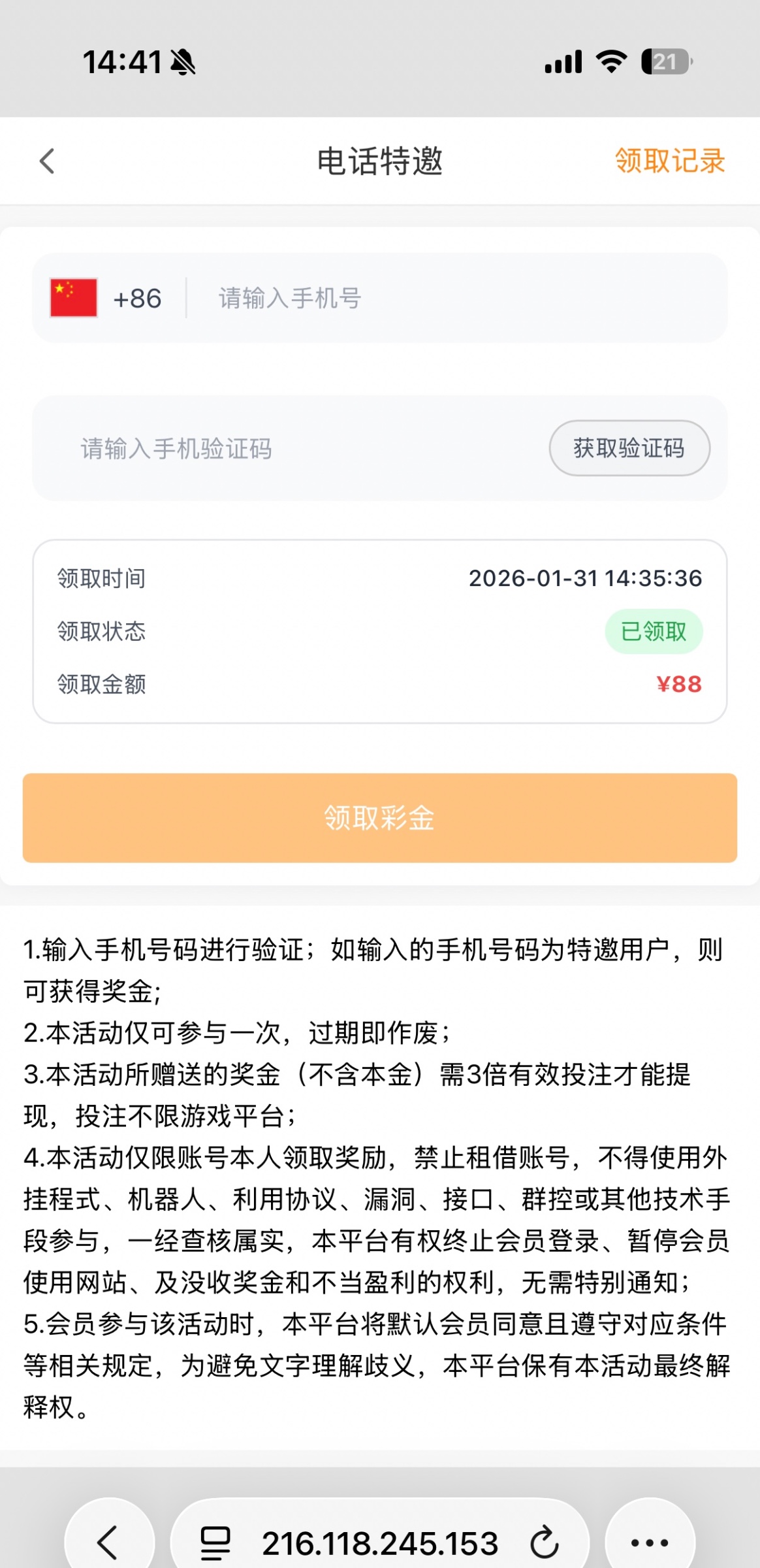 电话特邀,优惠里面短信验证