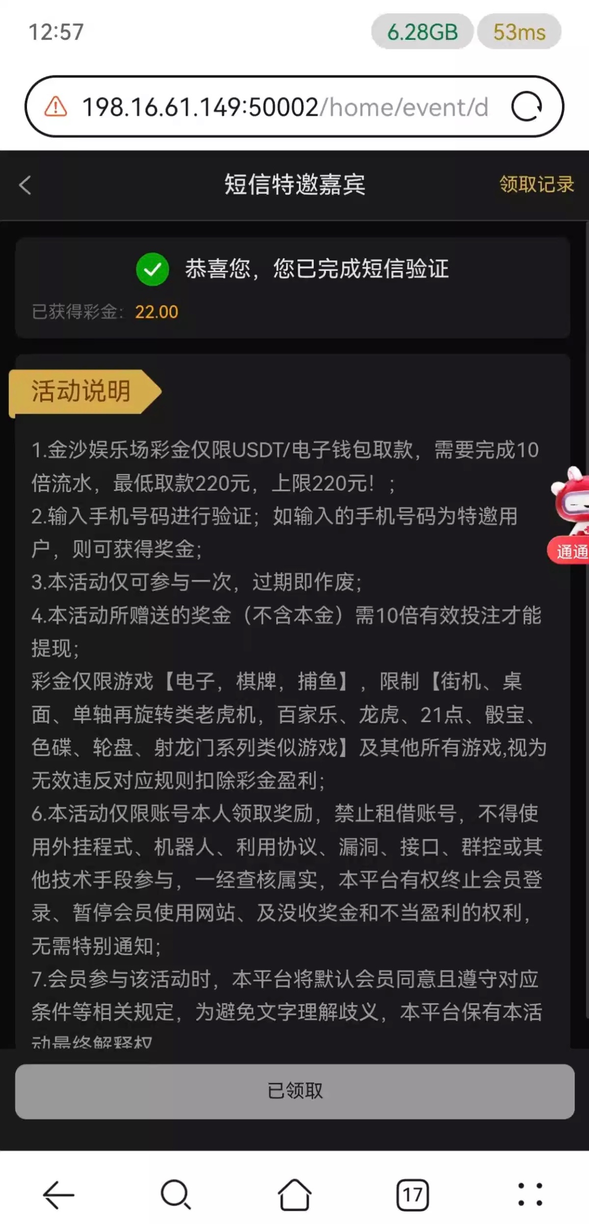 去年领过一次,把之前领过的账号换绑手机,然后重新注册一个号,名字重复也可以。特邀彩金提现只能提u或者钱包,有领过的老哥可以去试一下
